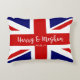 NewParkLane - Royal Wedding Accent Pillow to commemorate the Royal Wedding of Prince Harry and Meghan Markle on May 19th, 2018, with the British Flag - the Union Jack - and ' Harry & Meghan' in elegant script typography.