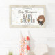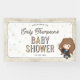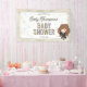 Celebrate your little one on the way with this magical baby shower banner featuring a sweet chibi-style illustration inspired by Hermione Granger from the Harry Potter series. The design showcases the clever witch wearing her Gryffindor robe and holding a wand, surrounded by pastel starburst accents. Customize with the honoree’s name and event date to create an enchanting banner perfect for any Harry Potter-loving family.