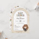 Celebrate your little one on the way with this magical baby shower invitation featuring a sweet chibi-style illustration inspired by Hermione Granger from the Harry Potter series. The design showcases the clever witch wearing her Gryffindor robe and holding a wand, surrounded by pastel starburst accents. A parchment-style arch frames the invitation details, while the back is decorated with whimsical wizarding icons like books, cauldrons, and magical creatures. Customize with the honoree’s name, event date, and registry information to create an enchanting invite perfect for any Harry Potter-loving family.