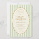 Celebrate your little wizard on the way with this charming Harry Potter Hedwig baby shower design in a soft, gender neutral color palette. Featuring Hedwig soaring gracefully with a letter in her beak, the elegant oval frame is accented with warm golden tones and delicate star details for a magical touch. The front showcases classic sage green and white vertical stripes, creating a timeless and refined look perfect for any baby celebration.