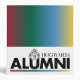 Check out this Hogwarts Alumni graphic, featuring the Hogwarts H Crest above the word "Alumni" underlined by two bars colored with a blending of the four Hogwarts House colors (red, green, blue, yellow).