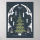 Check out this magical Harry Potter themed Christmas Tree graphic, featuring a fir tree surrounded by stars and floating candles, bordered by an ornate archway, topped with a flying Cornish Pixie!