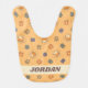 First of all, the shipping was fast. This bib was everything I had hoped for. It has such a smooth feel to it and is machine washable. The colors are vivid and the image quality is just as pictured on the web. Will be happy to give this as a New Baby gift !