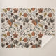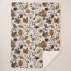 This Fall "Harvest and Horns" sherpa blanket features a Western autumn scene of colorful pumpkins, cow skulls adorned with roses, acorns and Fall foliage against an elegant cream background.