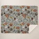 This Fall "Harvest and Horns" sherpa blanket features a Western autumn scene of colorful pumpkins, cow skulls adorned with roses, acorns and Fall foliage against an elegant sage green background.