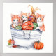 Autumn Harvest Art Design - Cute tabby orange kittens in a basket with corn, pumpkins and gourds.