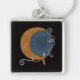 An orange and white celtic serpent woven into the shape of a crescent moon. Two stars twinkle from the ends of the antennae.