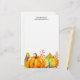 Personalized stationery with a watercolor illustration of pumpkins and seasonal autumn leaves.