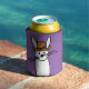 Purple can cozie cooler) with doodle of rabbit wearing a hat. On bottom of cozie, "Property of Elwood P. Dowd." Doodle taken from the gift book, "Dare To Be Happy." For more information, visit bethaschmidt.com. Custom requests welcome.