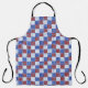 Great color and even though I ordered the kid size, it covers well enough to use during the holidays. I am not a big woman and prefer a shorter apron. I stand 5"6" and the length of the garment goes to mid-thigh. The tie straps fit well at my waist and even though there is no neck strap adjustment, the opening is plenty big enough. I am happy with the size and fit. I am sharing my apron with my 10 year old grandson, too! The color is vibrant and looks good, as shown on the website. The stitching looks strong and reinforced. Photographed is front side and back side of the apron, reinforced straps and coloring. My phone camera may not be the best at showing the details.