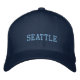 Hat shown in navy blue with blue embroidered text: Seattle Customize this item or buy as is.