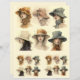 Several portraits of women wearing different styles of hats are showcased, each exhibiting a unique expression and direction of gaze. The soft pastel tones and intricate details such as the feathery and floral embellishments on the hats give a delicate and sophisticated touch to the portraits.