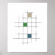 This mid century modern artwork features a black hatch pattern and 3 squares in colors popular in the mid 20th century - tan, green and blue. This will make a charming addition to your retro styled home.