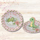 Serve up some sweetness with these adorable personalized paper plates! The center of the plate features a charming watercolor hatching dinosaur wearing a cute pink bow, while the rim is decorated with a playful green dino footprint pattern on a pink background. The plate proudly announces "IT'S A GIRL!" and can be customized with the honoree's name and baby shower date. These sturdy, disposable plates are perfect for serving cake or snacks and are a delightful addition to your "Girl Can Roar Too" dinosaur-themed celebration, ensuring every detail coordinates beautifully!
