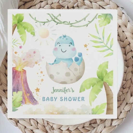 Plain white envelopes are included with paper invitations and will come to fit the invitation size you select. If you don’t need the envelopes, you may choose to not receive them by selecting the dropdown below "Envelopes" and choosing "None." If you’d like to have a design on your envelopes, you can browse all of these available envelopes to find the design that complements your Hatching Soon Boy Dinosaur Baby Shower Invitation.