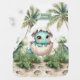 Celebrate the arrival of your little one with this adorable personalized baby blanket, featuring a cute watercolor baby dinosaur hatching from an egg with the playful phrase “Hatching Soon.” Designed in soft, neutral colors, this blanket is the perfect baby shower gift for boys, combining charm, warmth, and a touch of whimsy.