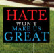 Hate Won't Make Us Great, Anti Trump Yard Sign
