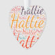 Hattie. Show and wear this popular beautiful female first name designed as colorful wordcloud made of horizontal and vertical cursive hand lettering typography in different sizes and adorable fresh colors. Wear your positive american name or show the world whom you love or adore. Merch with this soft text artwork is a great present, not only in womens history month, or birthday gift.