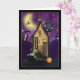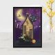 The haunted house witch and black cat greeting card! Wonderful card to send to friends and family for Halloween, Samhain or any magical day of the year! Featuring a digital 3D art of a mischievous looking black cat peeking out from behind a haunted witch house! There is a pumpkin and a bubbling cauldron in front of the house and a wicked witch flying across the crescent moon! Beautiful purple sky and glowing moon and stars background. Lovely for your holiday list! This card is blank inside and ready for your special handwritten, or click 'customize' now and add your message printed inside of your card. This card is available both blank and with a fun Halloween and Samhain message in our shop! For more spooky, Halloween or Samhain greeting cards and gifts please visit us!