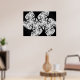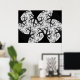 This haunting print was created from a fractal. It resembles a cluster of black trees with black trunks and twisted branches against a white moonlit night sky. It looks as though you are lying on the ground looking up at the sky from within a dense and spooky forest. Let your imagination run wild. The design is available in several different sizes, the largest of which is shown here.