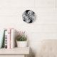 This awesome clock design was created from a fractal. It resembles a cluster of black trees with black trunks and twisted branches against a white moonlit night sky. It looks as though you are lying on the ground looking up at the sky from within a dense and spooky forest. Let your imagination run wild.