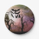 Creepy, spooky trees are infested with bats on this Halloween paper plate. Cute and fun, perfect for your Halloween party!