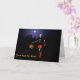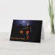 Not into trick-or-treating on Halloween? How 'bout a little pickup game of hoops? Features a skeleton dribbling a Jack O'Lantern in pace of a basketball. The skeleton is wearing a t-shirt emblazoned with the number "7" and team name "GHOULS." The moon hovers over a dark city skyline in the distance. Add your own text.