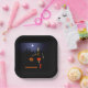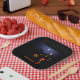 Not into trick-or-treating on Halloween? How 'bout a little pickup game of hoops? Features a skeleton dribbling a Jack O'Lantern in pace of a basketball. The skeleton is wearing a t-shirt emblazoned with the number "7" and team name "GHOULS." The moon hovers over a dark city skyline in the distance. Customize by adding your own text.