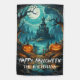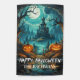 This spooky garden flag features an illustration of a Halloween haunted house. Please remember to adjust this yard flag with your family's last name.