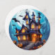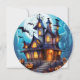 Cute watercolor Halloween card featuring a haunted house, funny pumpkins and bats. Easily personalize this beautiful Halloween card with your family name.