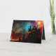 Folded Halloween party invitations. Haunted house and fiery sky on the front with "Halloween Party" text in shadow font. Add party information inside using creepy green text in a drippy font. Buy the printed version or share via download.
