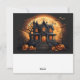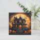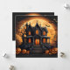 Haunted house with halloween pumpkins and bats under full moon, Happy Halloween