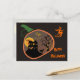 Haunted House in a pumpkin Halloween postcard-black. A haunted house, a spooky tree, the full moon, a black cat and a ghost in a pumpkin. Around it a witch on black background.