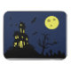 A spooky haunted house sits on a hill under a moonlit sky. this design is for Halloween decorations! Customize it by adding your own text or images!