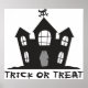 Spooky haunted house with Trick Or Treat written in scratchy writing below. Great for Halloween!
