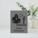 Haunted House Silhouette With Bats Gray Halloween Postcard