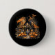 Button with a cool and spooky illustration of a wooden haunted house. Surrounded by big orange pumpkins and trees with orange leaves. Windows with orange lights add a nice glow. Fun Halloween design.