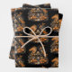 Wrapping paper sheets with a cool and spooky illustration of a wooden haunted house. Surrounded by big orange pumpkins and trees with orange leaves. Windows with orange lights add a nice glow. Fun Halloween design.