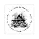 A rubber stamp with a cool and spooky illustration of a wooden haunted house. Surrounded by big orange pumpkins and trees with orange leaves. Windows with orange lights add a nice glow. Fun Halloween design.