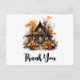 Haunted House with Pumpkins Halloween Thank You Postcard