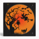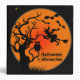 Cool, fun Halloween design. A haunted place, a witch, an owl, spooky trees, bats, a black cat, full moon.