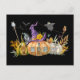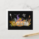 Haunted Pumpkin House with Ghost & Bats Postcard