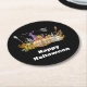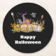Haunted Pumpkin House with Ghost & Bats Round Paper Coaster
