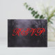 A custom response RSVP card template with grungy letters on a spooky Halloween sky with misty trees along a dark haunted road, gothic ravens and a cloudy full moon in a purple mist. Customize It to change fonts, sizing and more, even save your design for later.