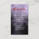 A custom reception enclosure card template with vintage blackletter in red, retro block and grunge script letters in white against a sky with purple misty trees , gothic ravens and a cloudy full moon.