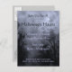 A custom postcard invitation with a background of a spooky Halloween sky with misty trees along a dark haunted road, gothic ravens with a blue mist. Customize it to change fonts, colors, sizing, text and more, even save your design for later.