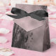 A wedding or party favor gift box with a red misty Halloween sky with dead trees along a dark haunted road, gothic ravens and a cloudy full moon and a black ribbon.