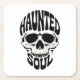 Bold black-and-white skull with curved 'Haunted'/'Soul' typography; high-contrast gothic motif for Halloween, rock, and streetwear fans seeking fearless edge.