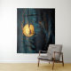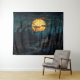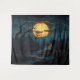 Extra spooky haunted Halloween village for your Halloween party. An uneven path winds its' way towards falling down houses that ghosts live in under a full moon that illuminates dead trees.