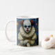Add a chilling yet artistic edge to your drinkware with this haunting ceramic mug featuring a pale-faced clown under the lamplight. With stark red hair, shadowed eyes, and a ruffled ivory costume, the design blends gothic atmosphere with vintage circus style. The cobblestone street and glowing lanterns create a moody backdrop that makes this mug feel like a story frozen in time. Perfect for collectors, gothic art lovers, or anyone who enjoys unique and dramatic drinkware, this piece turns every sip into a theatrical experience.